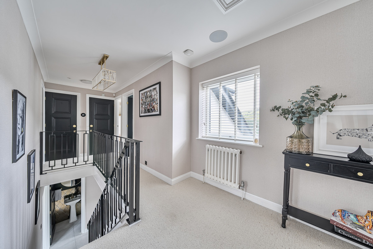 Upstairs, the home boasts five sizeable bedrooms. The first being the Master bedroom, fitted with full length sliding door wardrobes, a dressing table and a sliding door to give access to the en-suite bathroom. The master bedroom en-suite has a four piece suite including its tiled double shower with a fitted jet shower, his and hers hand basins and underfloor heating, that truly brings hotel luxury into the room. The upstairs, continues to boast another four double bedrooms with two of them featuring en-suites, perfect for housing family and guests. Accompanying the 5 bedrooms is a modern three piece suite family bathroom bringing modern luxury to every area of the house.