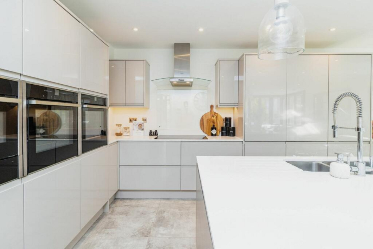 The ground floor showcases immaculate interior design, with a bespoke integrated kitchen and dining/family area enhanced by underfloor heating. This open-plan heart of the home is perfectly balanced by a large lounge with feature fireplace, a second reception room, and a spacious utility – offering the ideal blend of contemporary open-plan living and traditional spaces.
